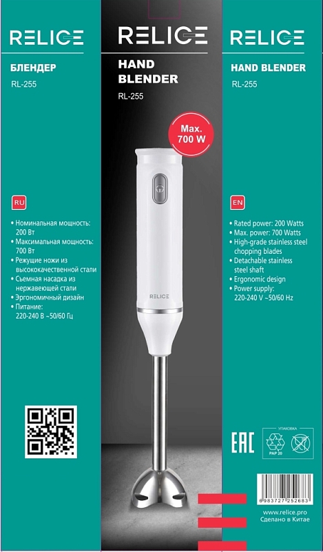 Номинальная мощность: 200 Вт; Максимальная мощность: 700 Вт